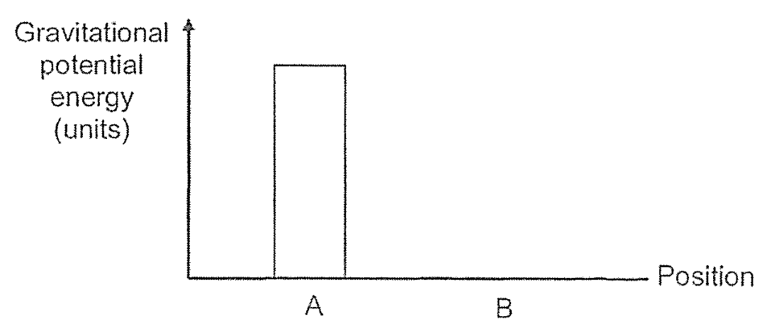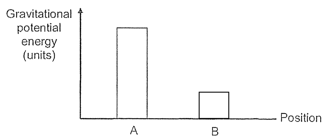 (b) The bar graph below shows the gravitational potential energy of the carton at position A. Draw a bar on the graph to show the amount of gravitational potential energy the carton has at position B. [1]